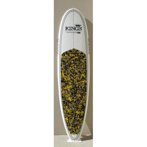 This is a recreational version of the ever popular Knight Model. This board measures 10'6" X 4-1/2" thick X 30" wide Knight Model. The board has a clear glass job with two black pin lines and a high-gloss finish. The displacement for this board will support a body weight of up to 225 lbs. The board comes complete with the deck pad installed.The Knight is our most popular high performance Stand Up Paddleboard. It is designed and tested by Master Shaper Dave Daum. This board does everything incredibly well. It paddles so fast it feels like a race board. The Knight is great for flat water paddling in oceans, rivers, lakes, streams, and harbors. The Knight is loved by everyone who rides it.