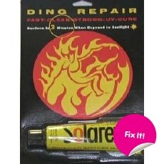 Solarez Surfboard Ding Repair * Dispersed, wetted fibers our proprietary formula assures that millions of fiberglass fibers are thoroughly wet-out and evenly dispersed in every dose. * A variety of fibers: Glass, ceramic and mica provide strength, adhesion and toughness. * A bubble-free mixture. No matter how hard you try, you can't hand-mix fillers into resin without including some air. Bubbles and unwet fibers are fractures waiting to happen. Solarez contains no bubbles. * Denser cross-linking and surface cure. Solarez efficient cross-linker assures a 100% cure on the surface extending t all depths. This is crucial to structural integrity. * UV Stable. Solarez resists yellowing, crazing, chalkiness and other untoward effects or weathering.